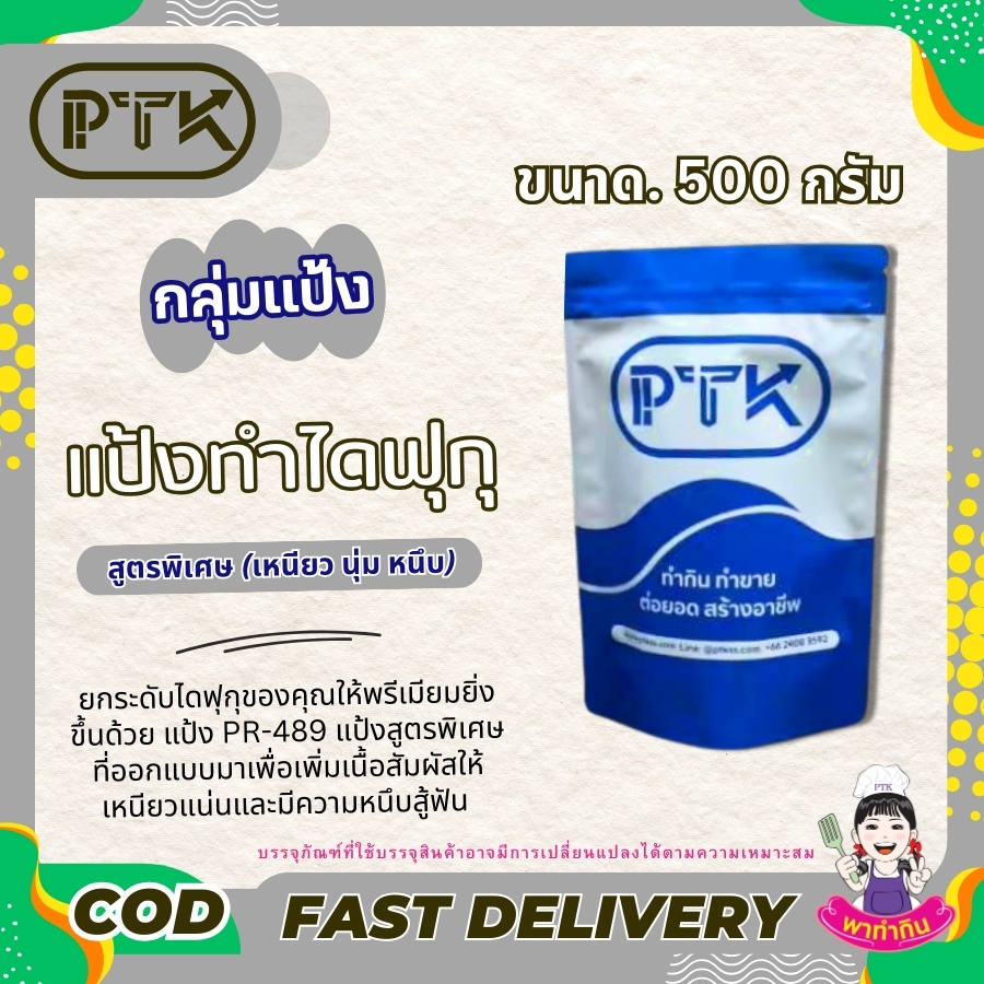 แป้ง PR-489 แป้งสูตรพิเศษที่ออกแบบมาเพื่อเพิ่มเนื้อสัมผัสให้ เหนียวแน่นและมีความหนึบสู้ฟัน คงตัวสวย ไม่ย้วยง่าย เหมาะสำหรับทั้งทำทานเองและทำขาย