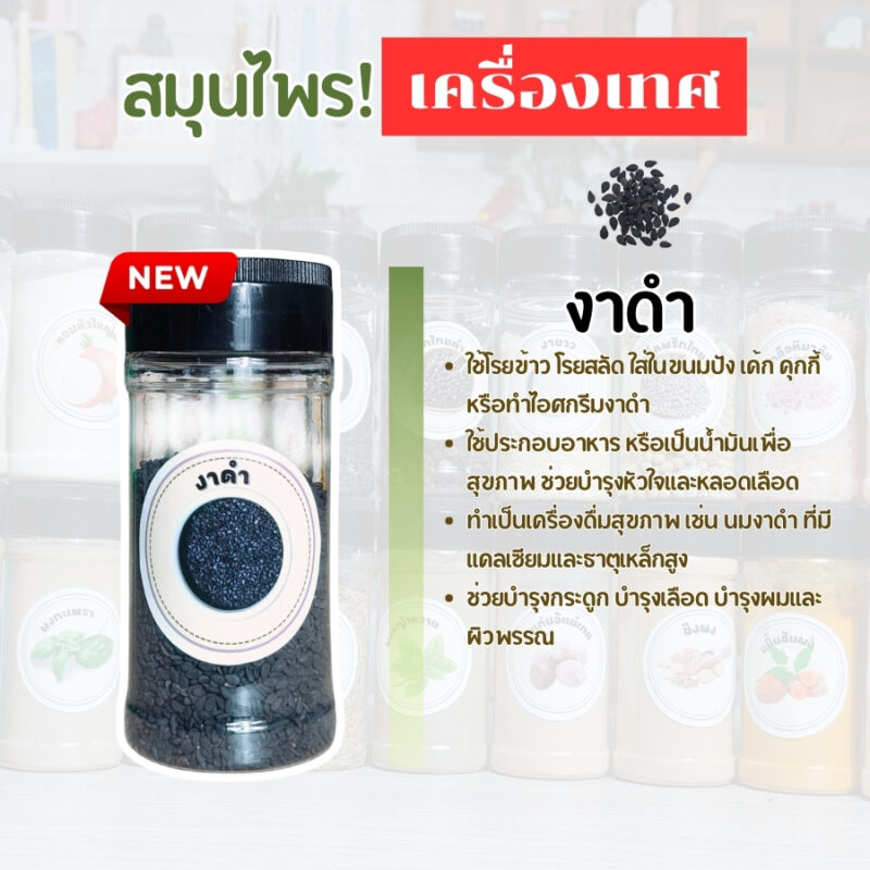 งาดำ แบบกระปุก PTKss งาดำเป็นธัญพืชที่มีคุณค่าทางโภชนาการสูงและมีประโยชน์ต่อสุขภาพหลายอย่าง มันถูกนำมาใช้ในอาหารหลากหลายรูปแบบทั้งเป็นส่วนประกอบหลักและส่วนเสริมเพื่อเพิ่มรสชาติและคุณค่าทางอาหาร