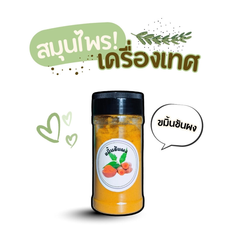 ขมิ้นชันผ่านการอบแห้ง และทำการบดให้เป็นผงละเอียด เป็นสมุนไพรใช้เป็นส่วนประกอบในการปรุงอาหาร หรือเป็นส่วนผสมในการทำสครับขัดผิว ทำสบู่ ฯลฯ